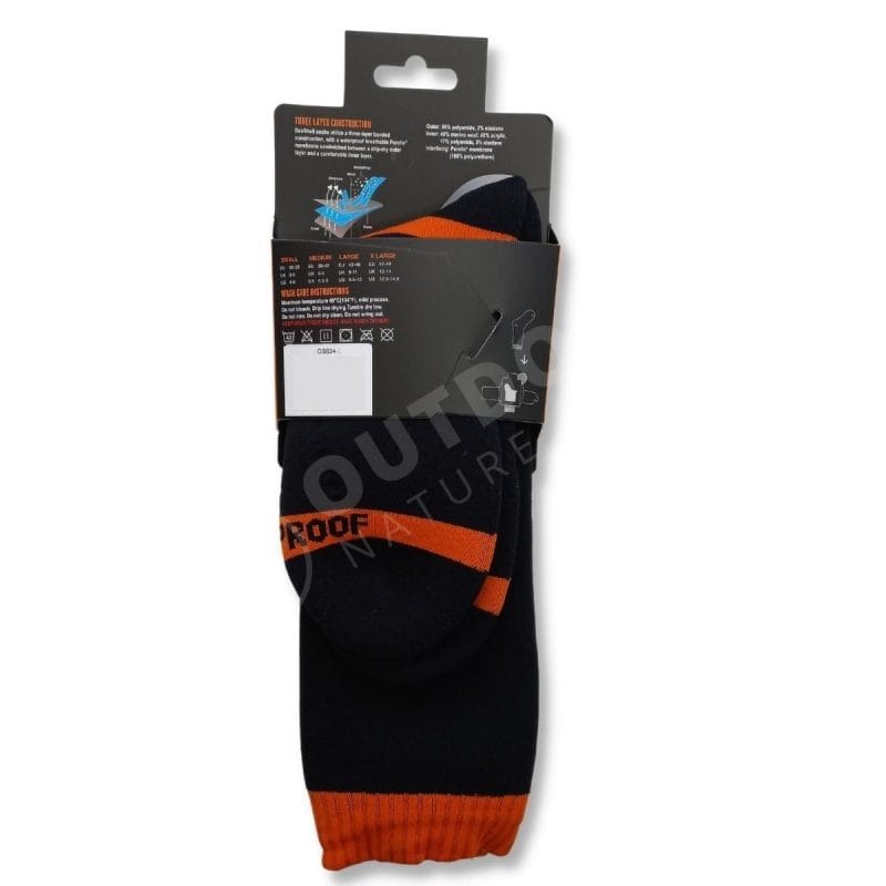 Great socks, feet nice and warm, haven’t tested in relation to water but I have full confidence