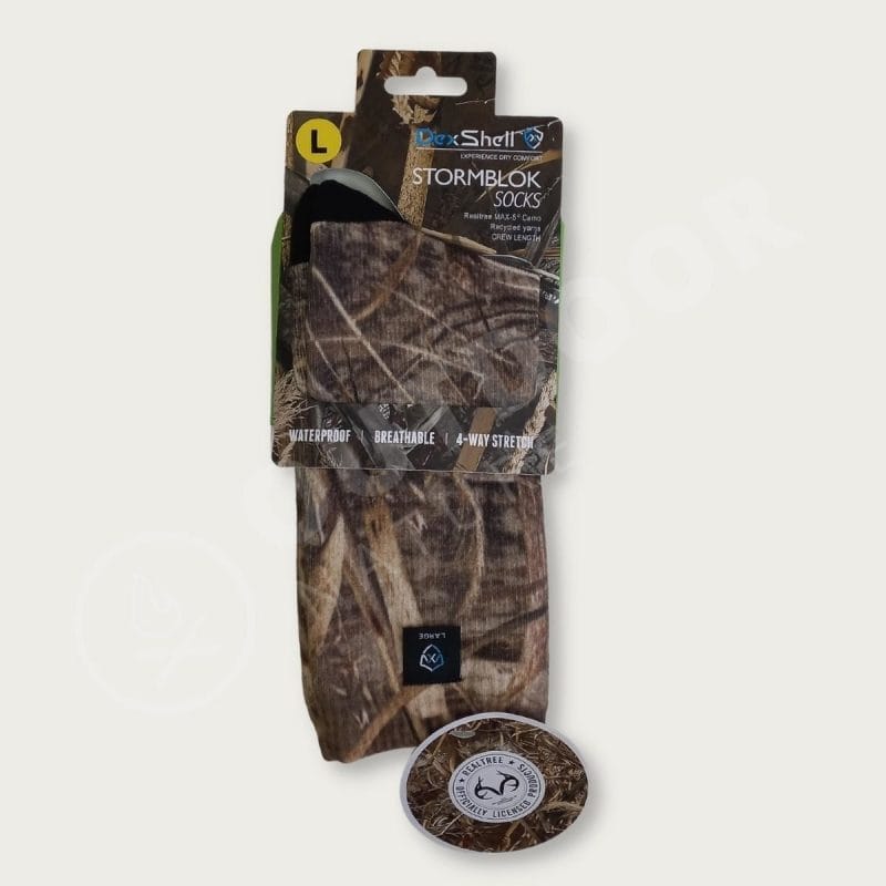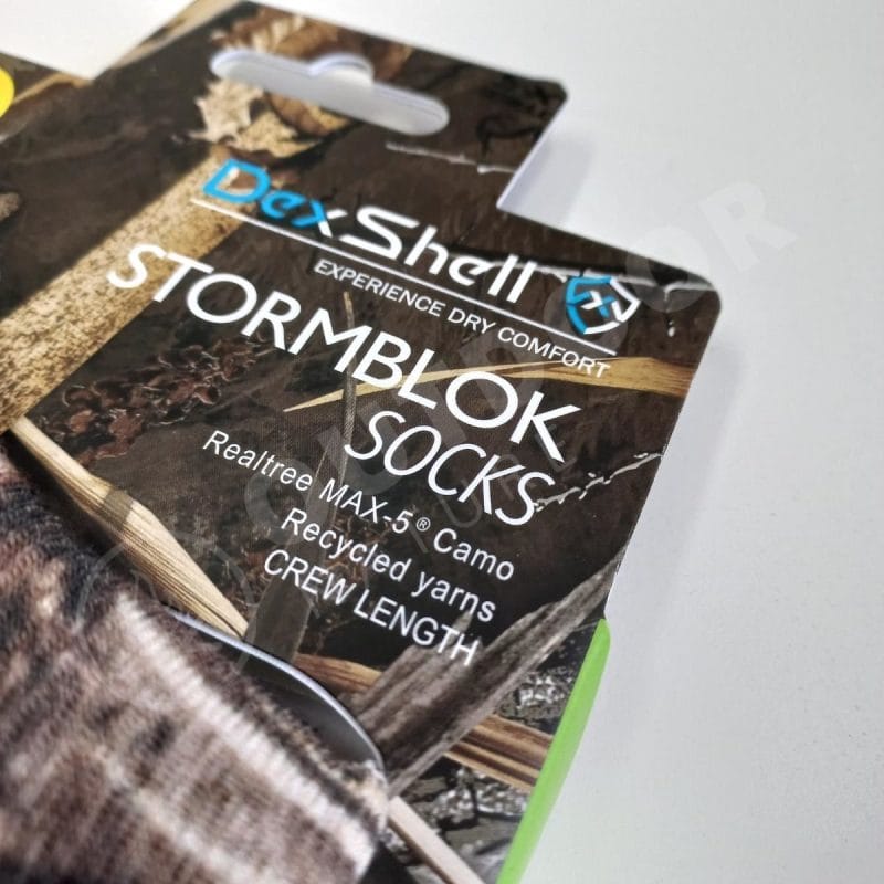 Printed with the Realtree MAX-5 camo design using 360° print technology, the StormBLOK socks possess all the features of the DexShell range of socks – waterproof, windproof, and breathable.