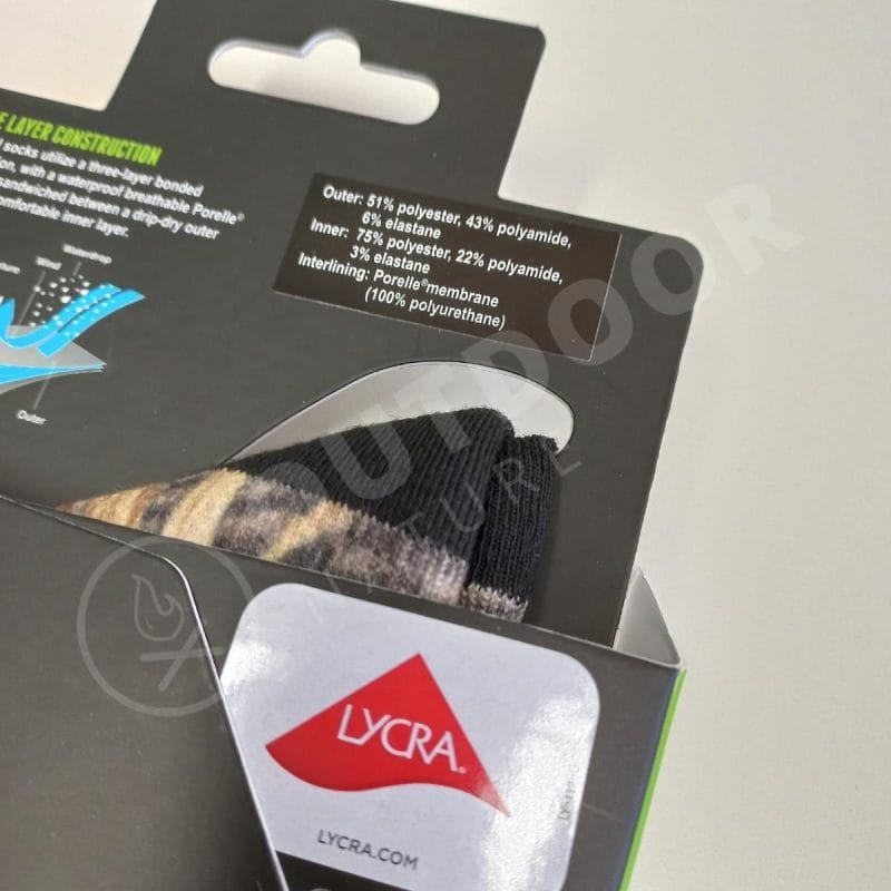 Outer Sock: 51% Polyester, 43% Nylon, 6% Elastane