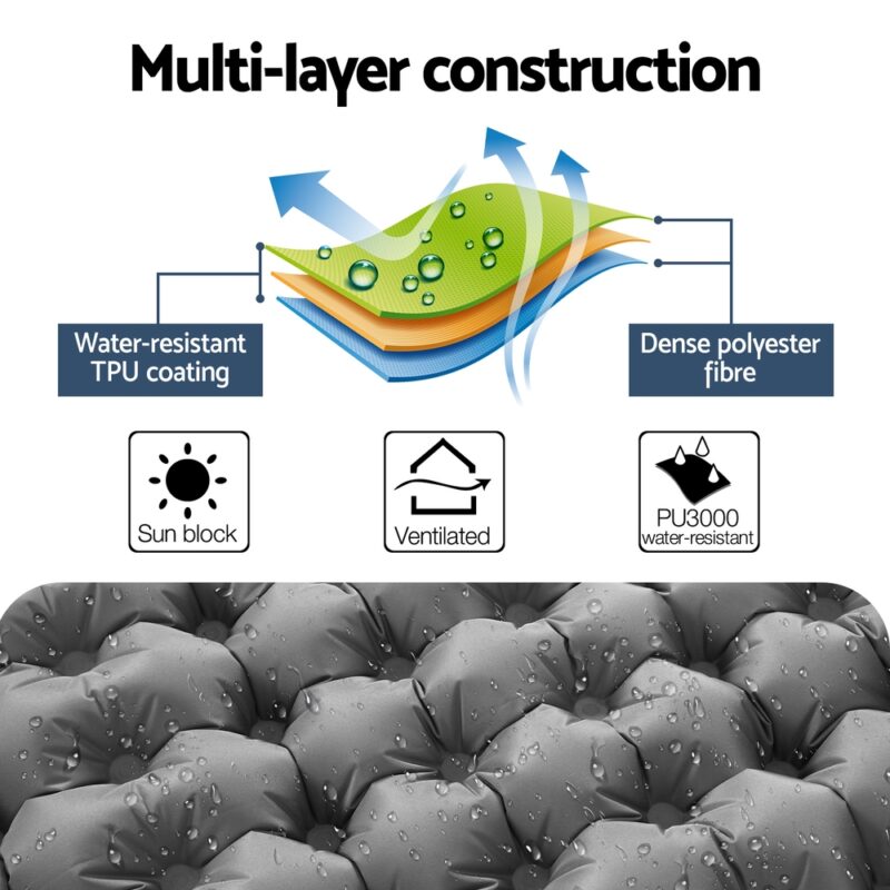 Looking for a comfortable night’s sleep while camping? Look no further than the Weisshorn Self-Inflating Mat. With its efficient self-inflating valves, the mat can quickly inflate in 120 seconds. The TPU coating surface is durable and water-resistant, making it easy to clean and maintain no matter the surface. 9cm thickness mat with pillow is comfortable to sit and lie on during your trip. When you’re finished, simply roll up your mat and put it in the provided carry bag for easy transportation and storage. Ideal for camping all year round, you’ll love the convenience of the Weisshorn Self-Inflating Mat. Get yours today in preparation for the camping season.